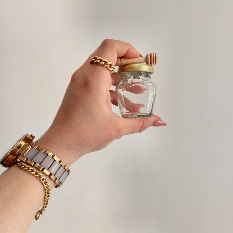 ارتفاع ۵ و نیم سانت دهانه ۳ سانتیمتر گنجایش عسل ۵۶ گرم